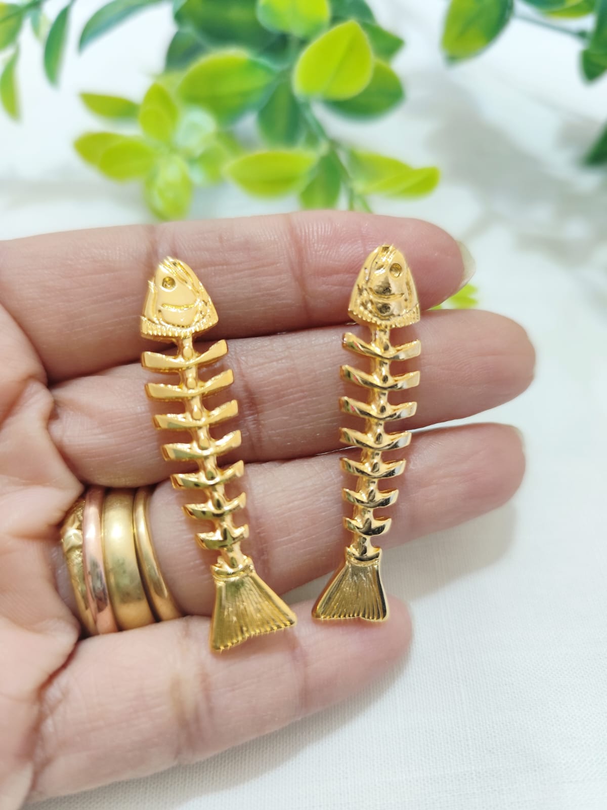 Brinco Esqueleto de Peixe 45mm Ouro (par)