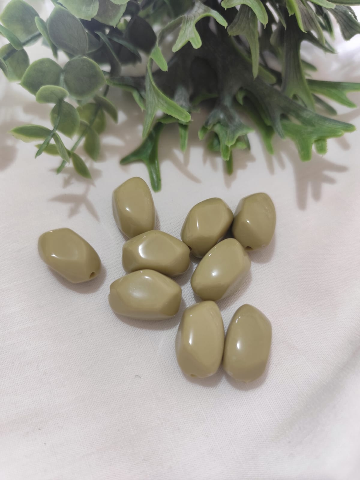 Conta de Resina Geométrica 20mm Verde Oliva (4un)