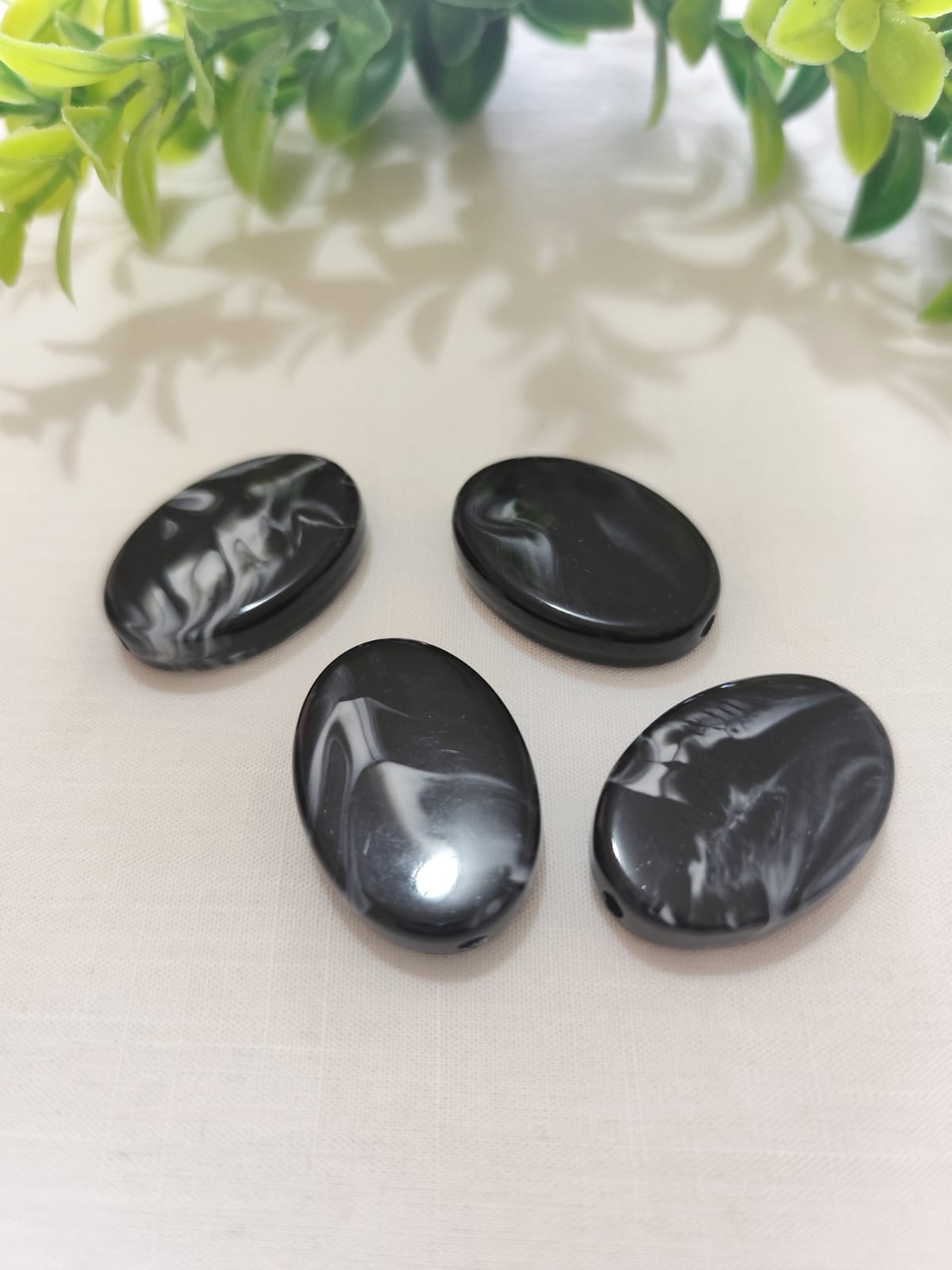 Conta de Resina Oval Preto Mesclado 32mm, furo 3mm (4un)
