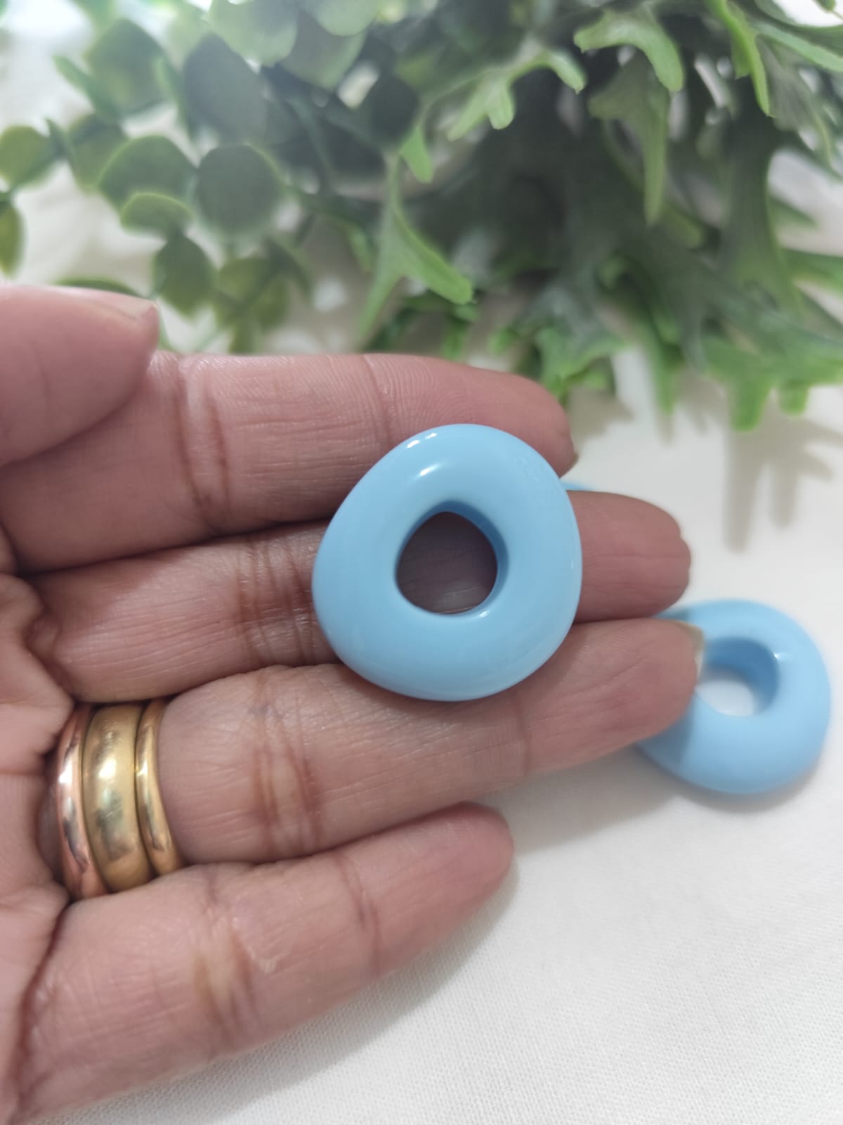 Conta Resina Redonda Azul Claro 25mm, furo 10mm (4un)