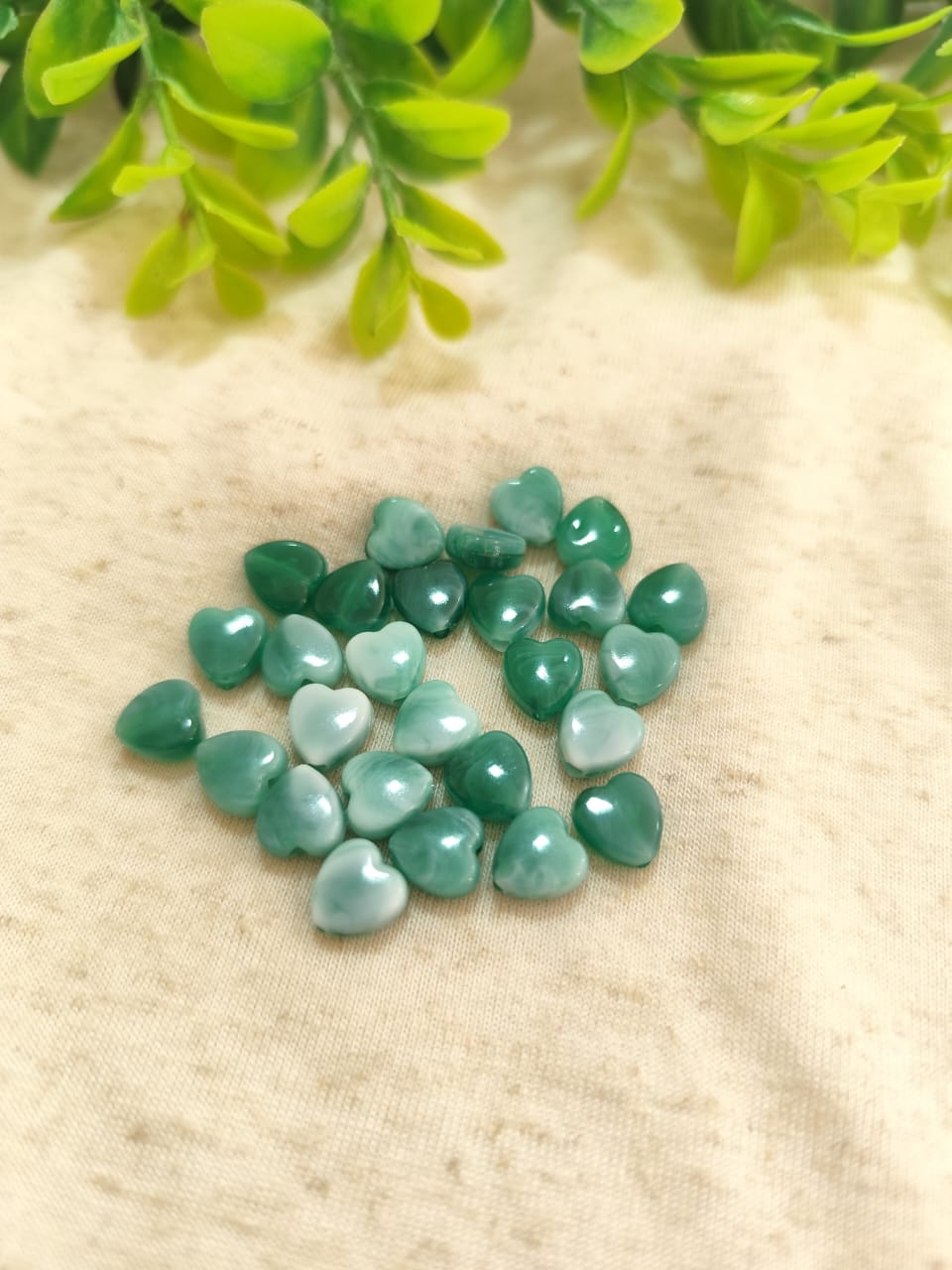 Coração Passante Resina 9mm Verde Mesclado (10gr -Aproximadamente 49un)