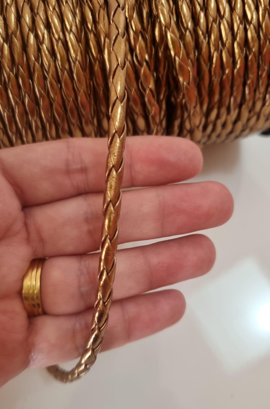 Cordão Couro Sintético Trançado Cobre 5mm (Metro)