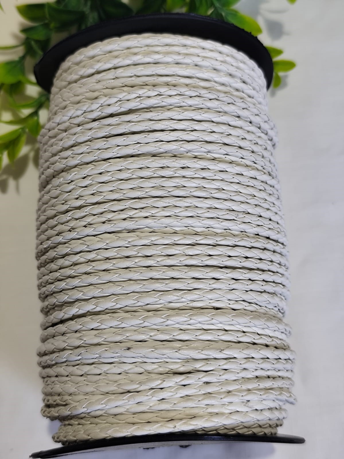 Cordão Couro Sintético Trançado Off White 3mm (Metro)