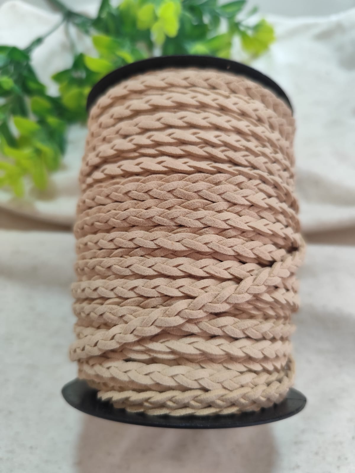 Cordão de Camurça Trançado 5mm Nude (metro)