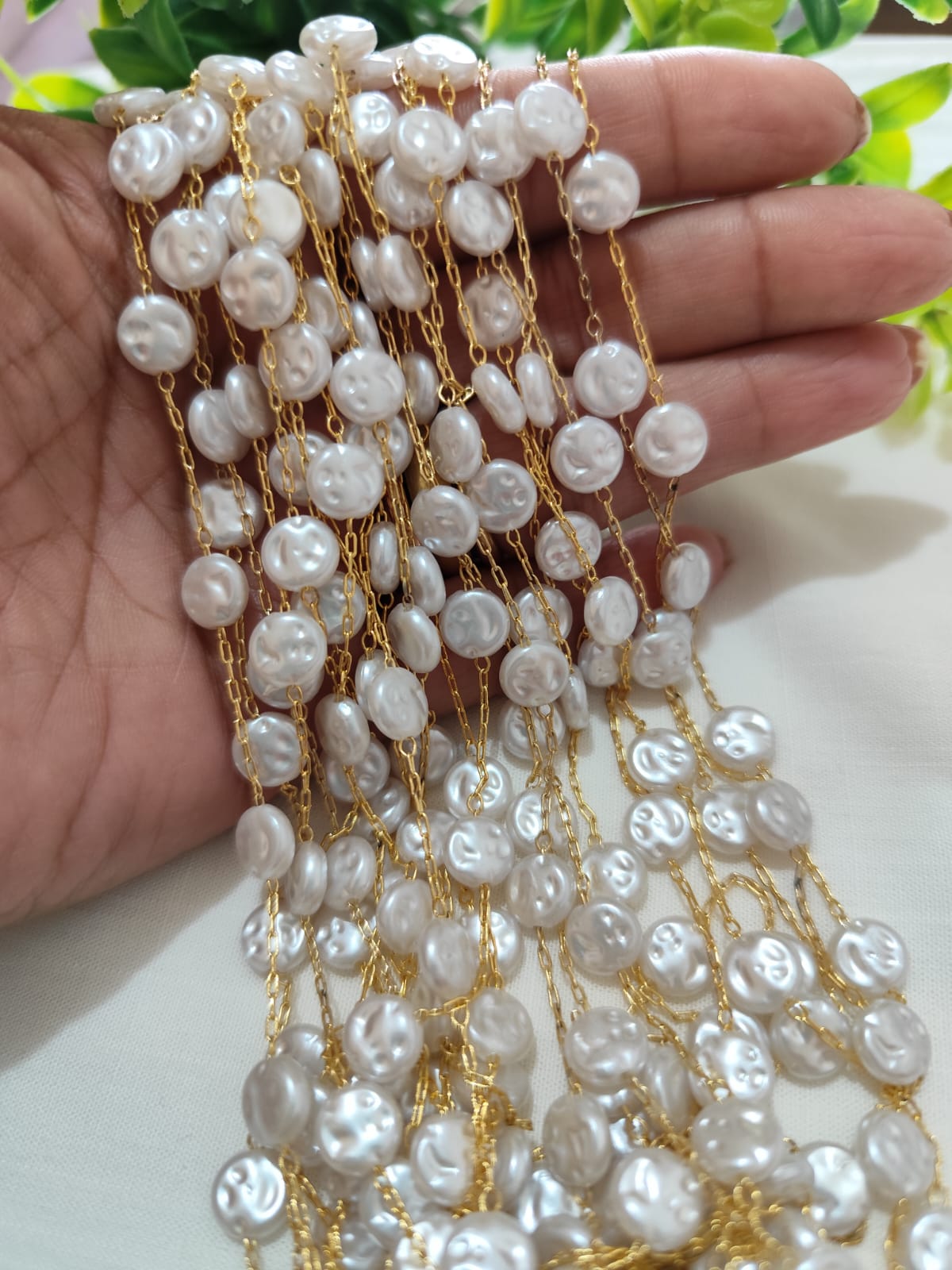 Corrente Pérola Redonda Achatada 7mm Ouro (mt)