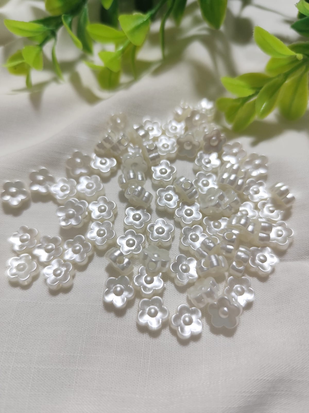 Flor Passante Pérola ABS 8mm Marfim (10gr - Aproximadamente 33)