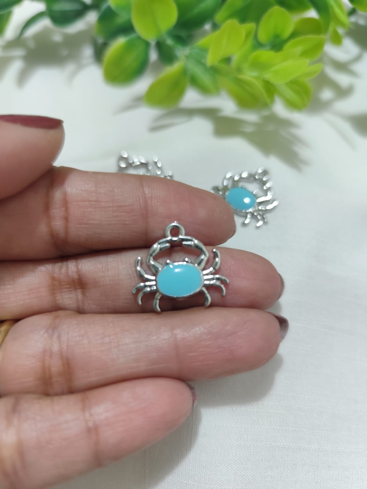 Pingente Caranguejo Resinado Azul Niquel 15mm
