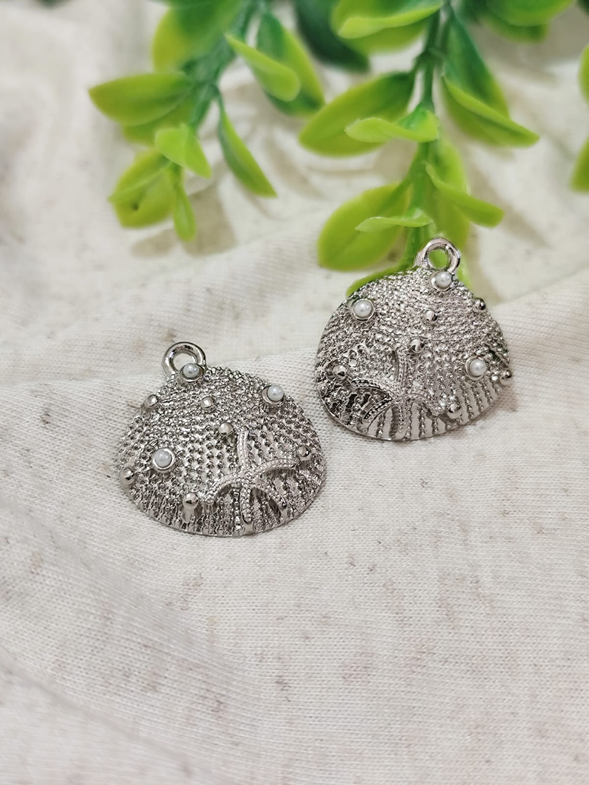 Pingente Concha trabalhada com pérola 22mm Níquel (un)