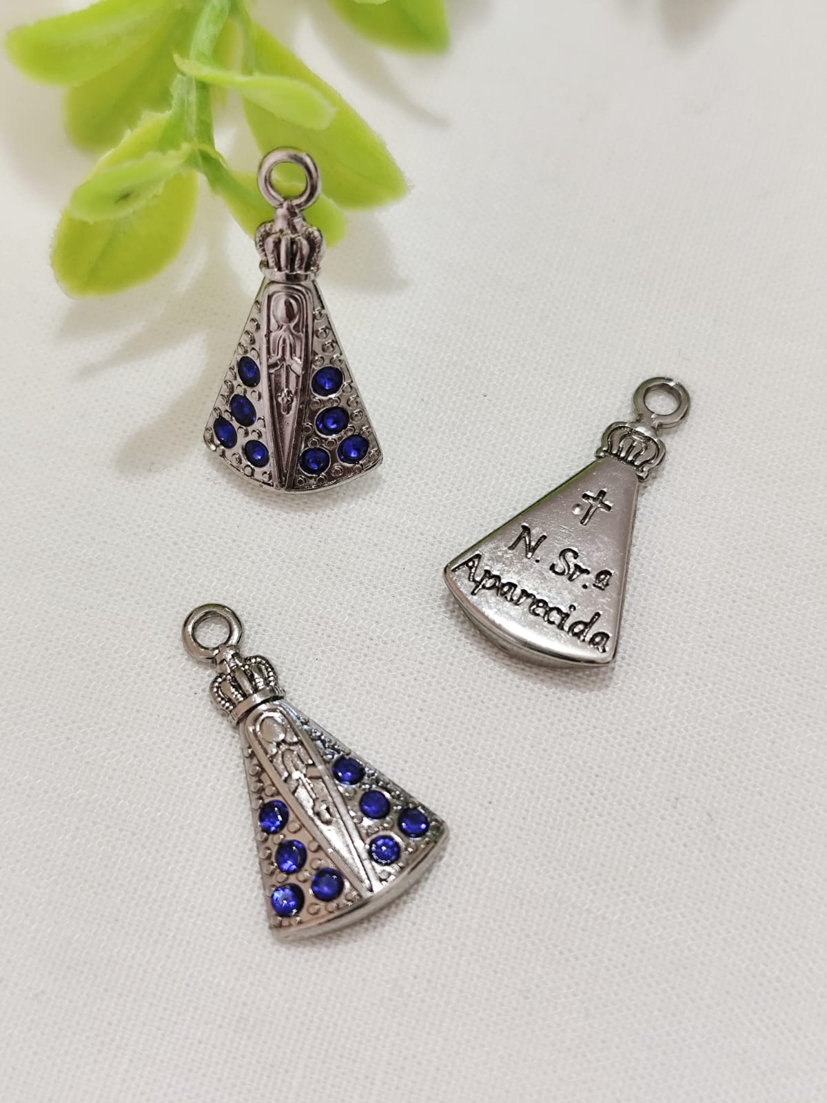 Pingente Nossa Senhora Aparecida com strass azul Níquel 22mm (un)