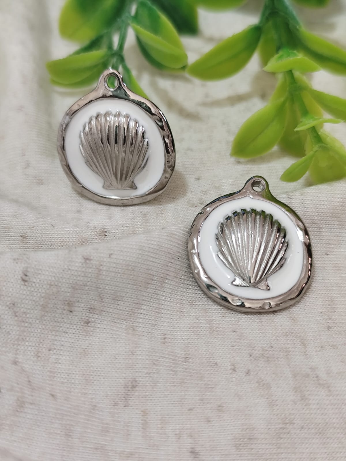 Pingente Resinado Branco com Concha dentro Níquel 25mm (un)