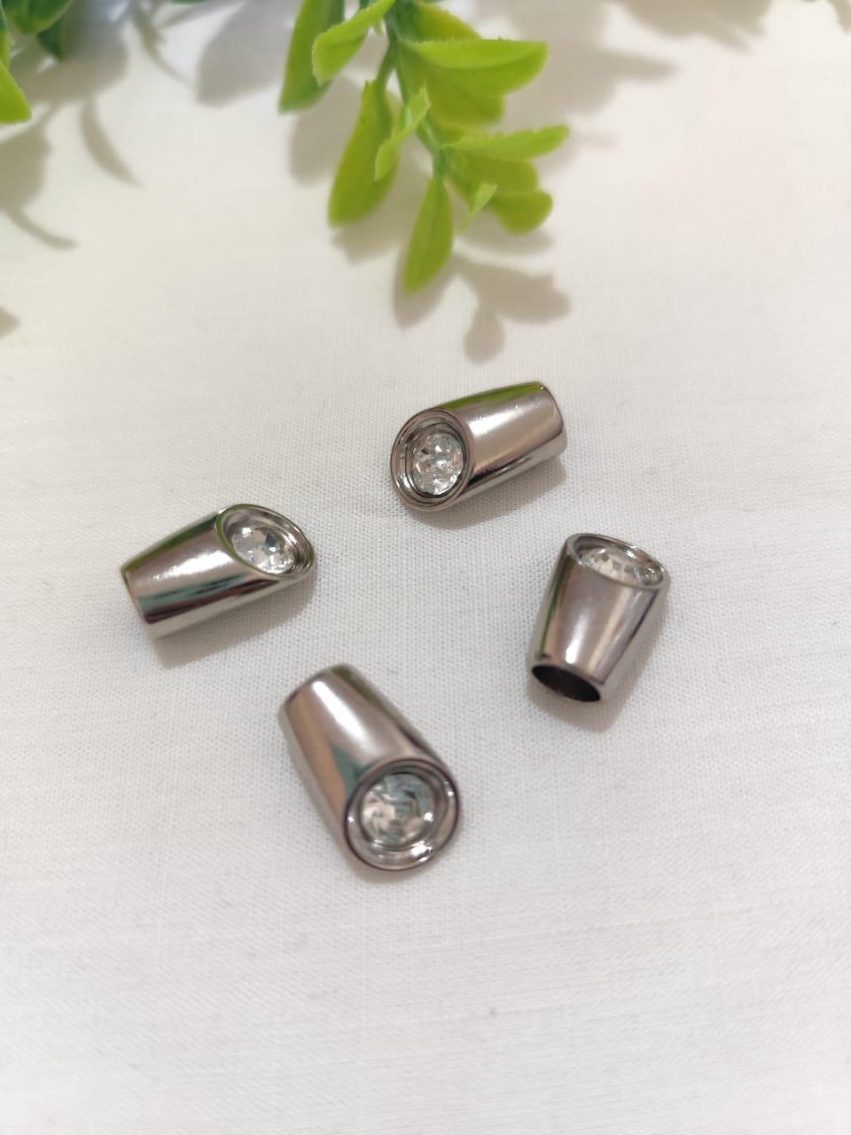 Ponteira com strass Níquel, abertura 7mm (2 un)