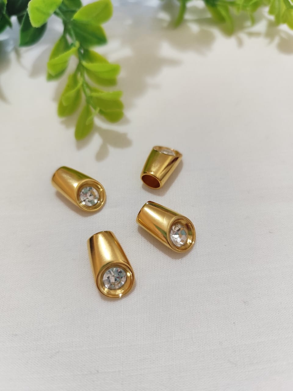 Ponteira com strass Ouro, abertura 7mm (2 un)