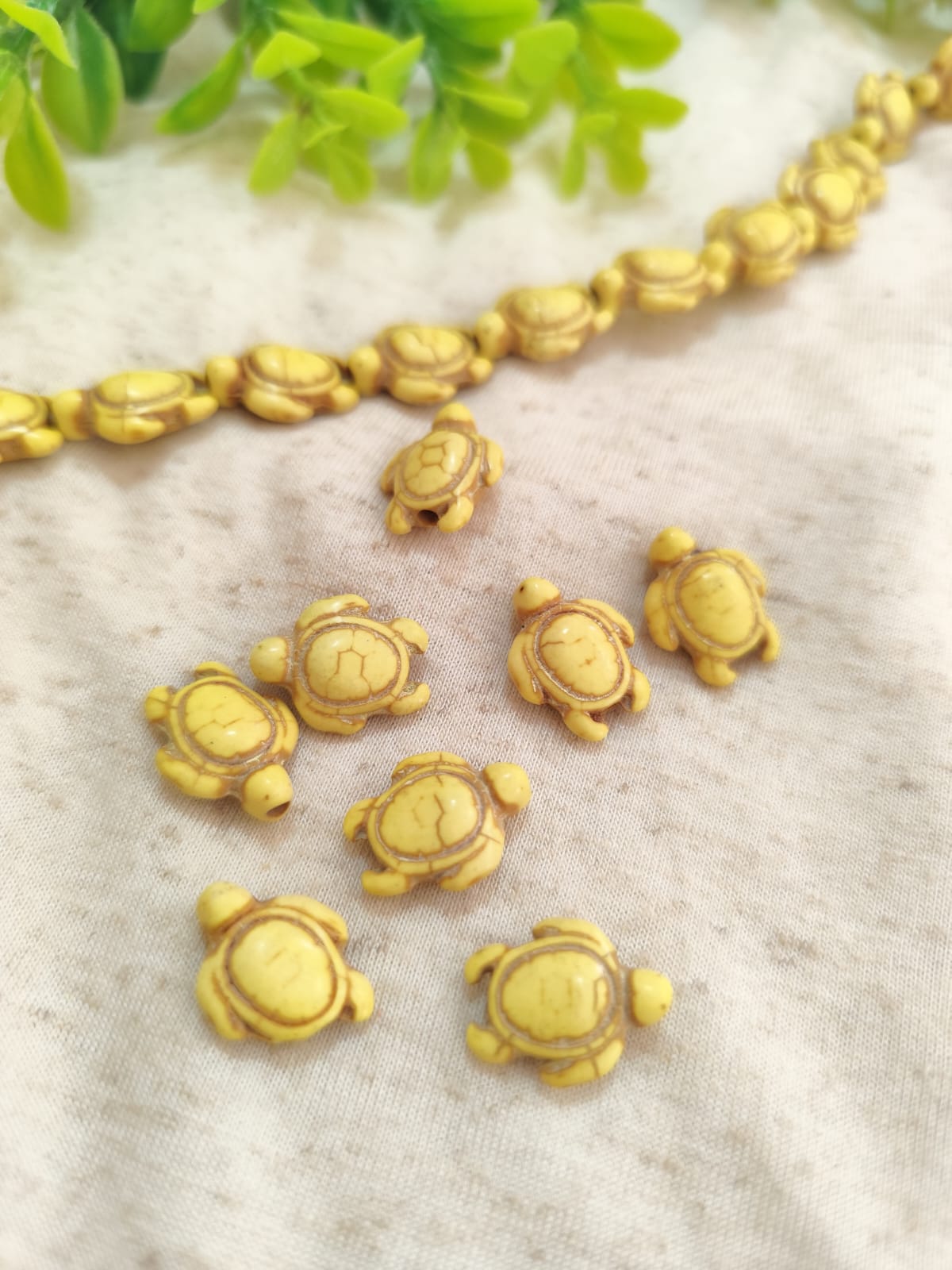 Tartaruga passante Howlita Amarelo 15mm, furo 1 mm (un)