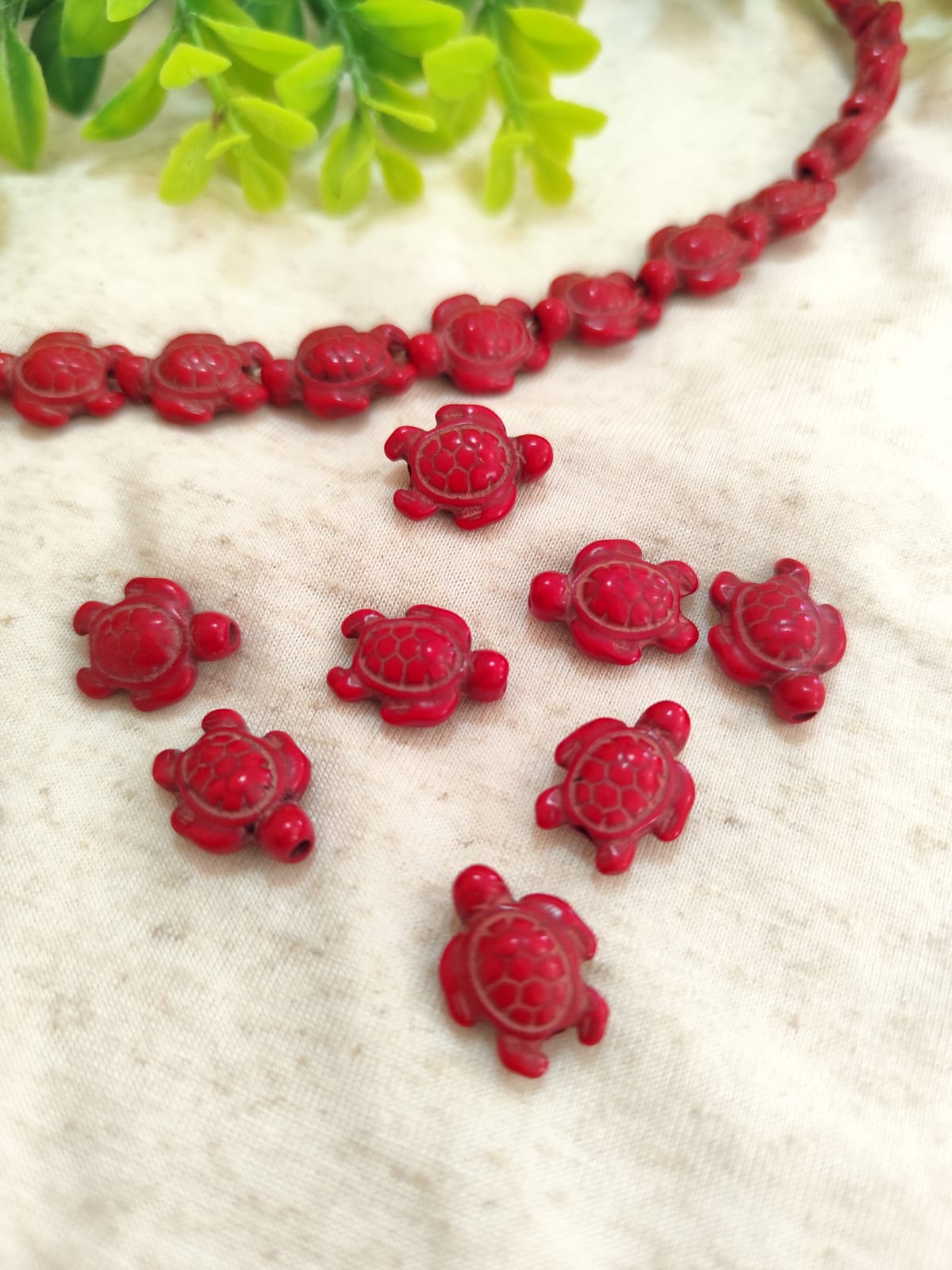 Tartaruga passante Howlita Vermelho 15mm, furo 1 mm (un)