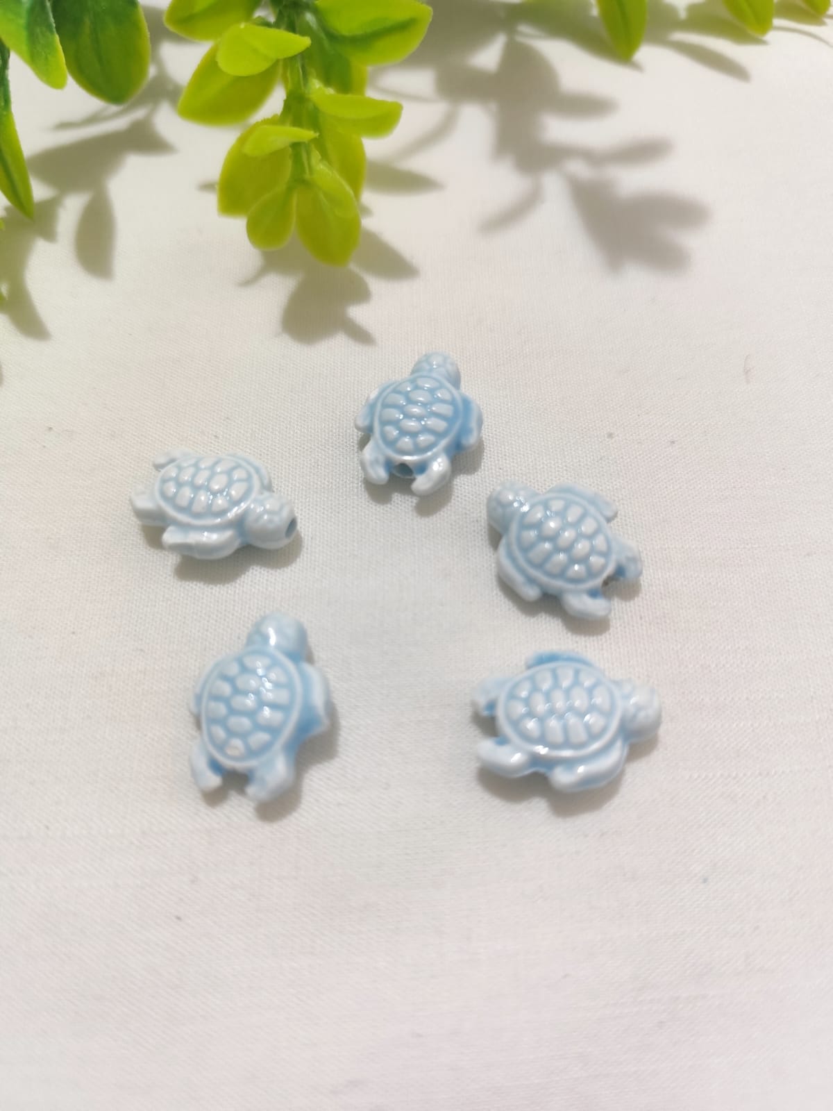 Tartaruga passante Murano Azul Claro 15mm, furo 1 mm (UN)